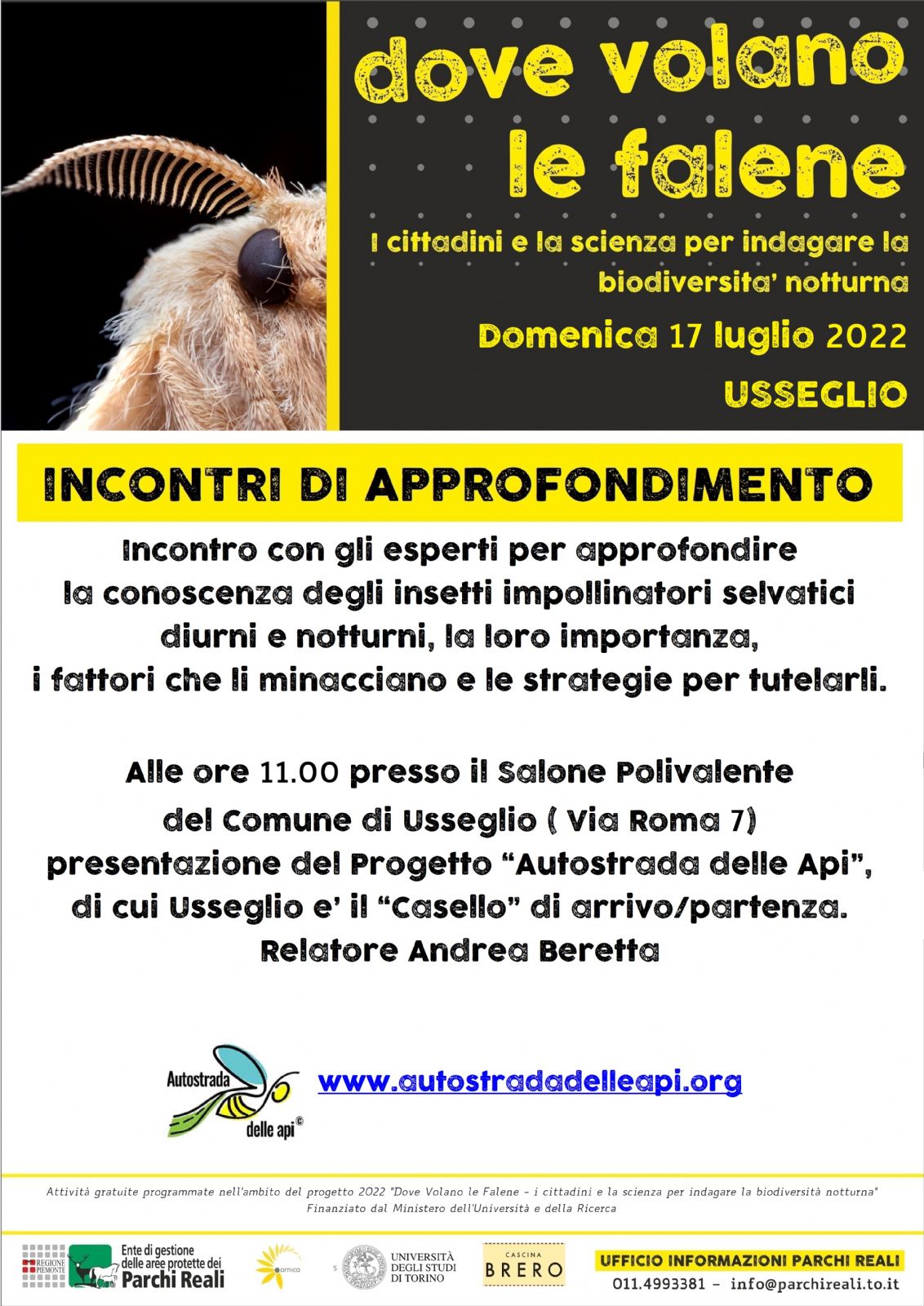 Presso il salone polivalente comunale dalle ore 11 incontro con gli esperti per approfondire la conoscenza degli insetti impollinatori selvatici diurni e notturni, la loro importanza, i fattori che li minacciano e le strategie per tutelarli.
