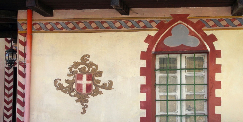 Di origine medievale, è caratterizzata da decorazioni ottocentesce (ma recentemente rimaneggiate) sulla facciata, raffiguranti damigelle a cavallo.