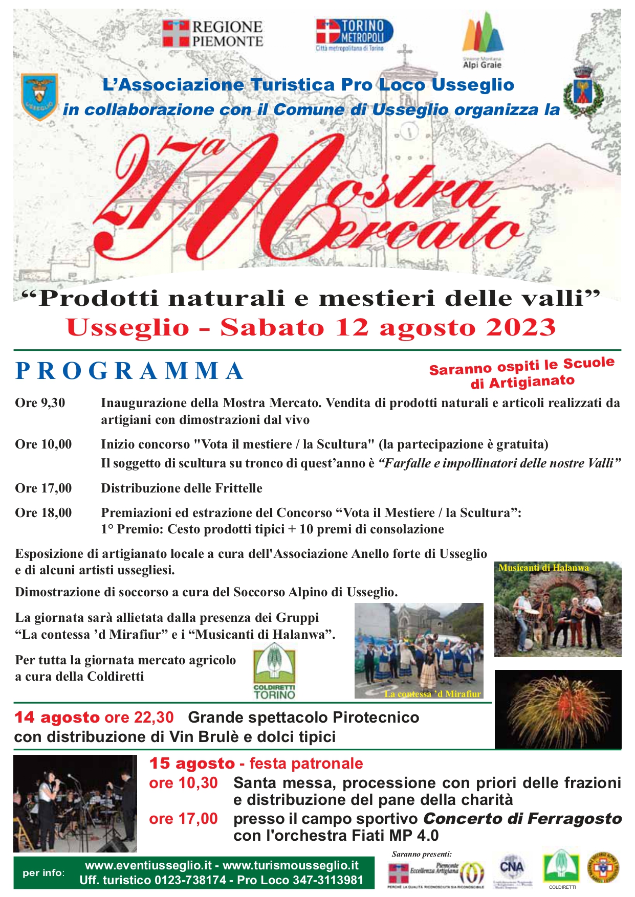 L’Associazione Turistica Pro Loco Usseglio in collaborazione con il Comune di Usseglio organizza la 27^ Mostra Mercato dei Prodotti Naturali e Mestieri delle Valli
