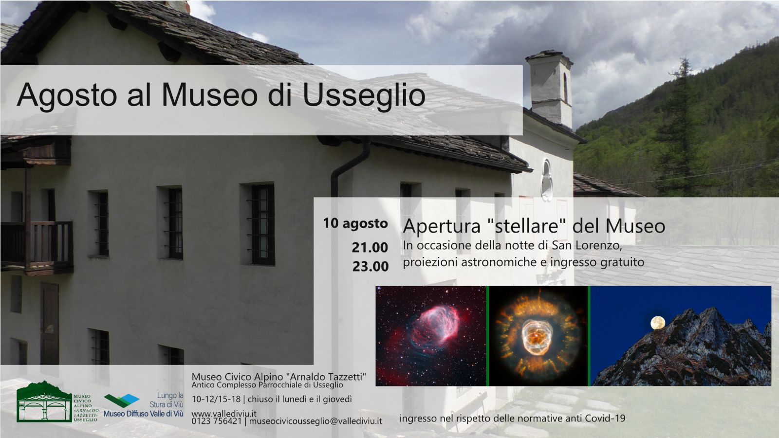Apertura straordinaria serale del Museo Civico di Usseglio dalle ore 21.00 al ore 23.00
