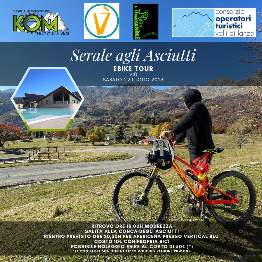 Escursione serale in mtb alla conca degli asciutti, a seguire aperitivo presso Verticalblù. E' possibile usare la propria bici o noleggiarla in loco