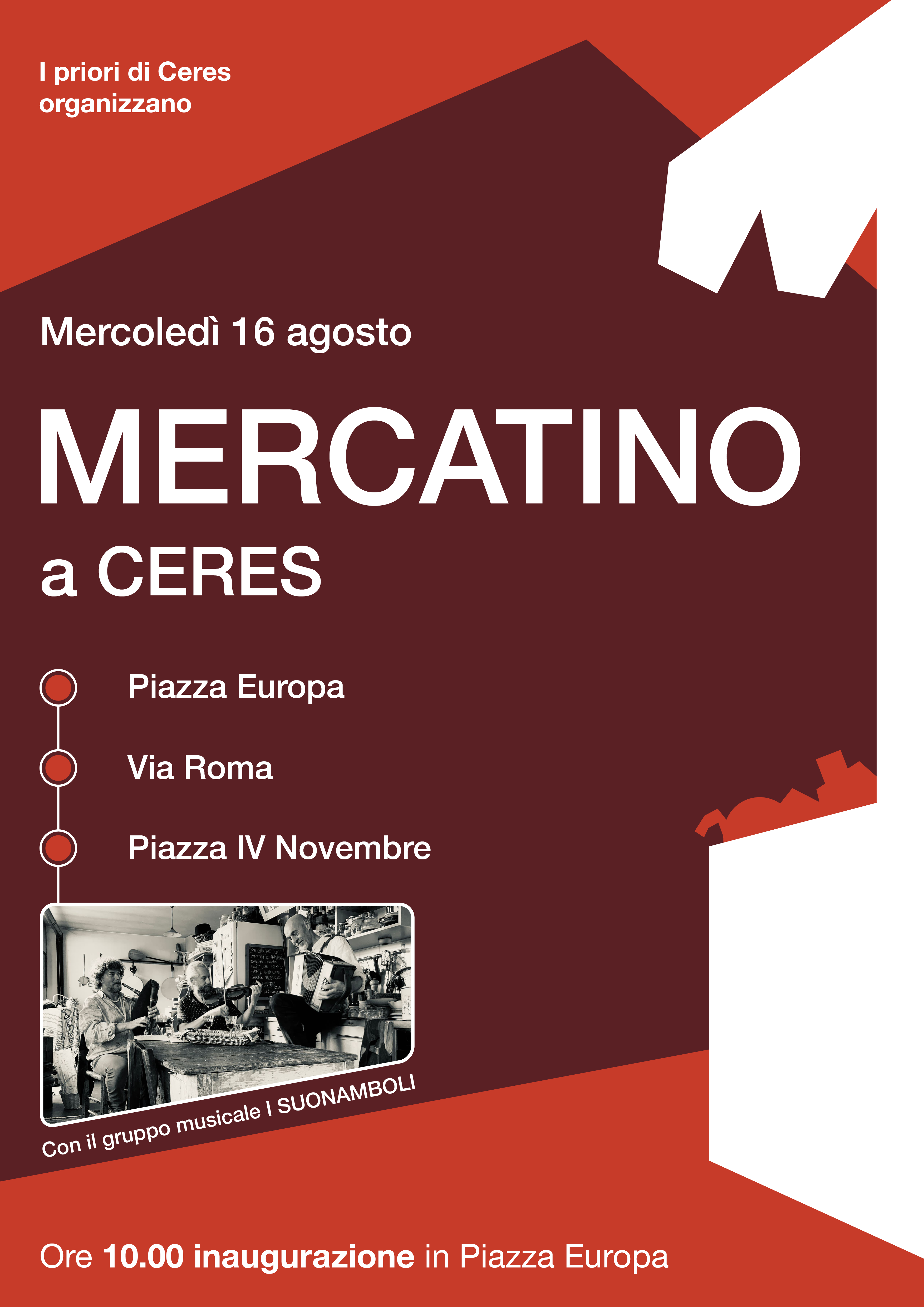 - ore 11:00 Santa Messa per San Rocco, mercatino per le vie del paese e gruppo musicale i Suonamboli