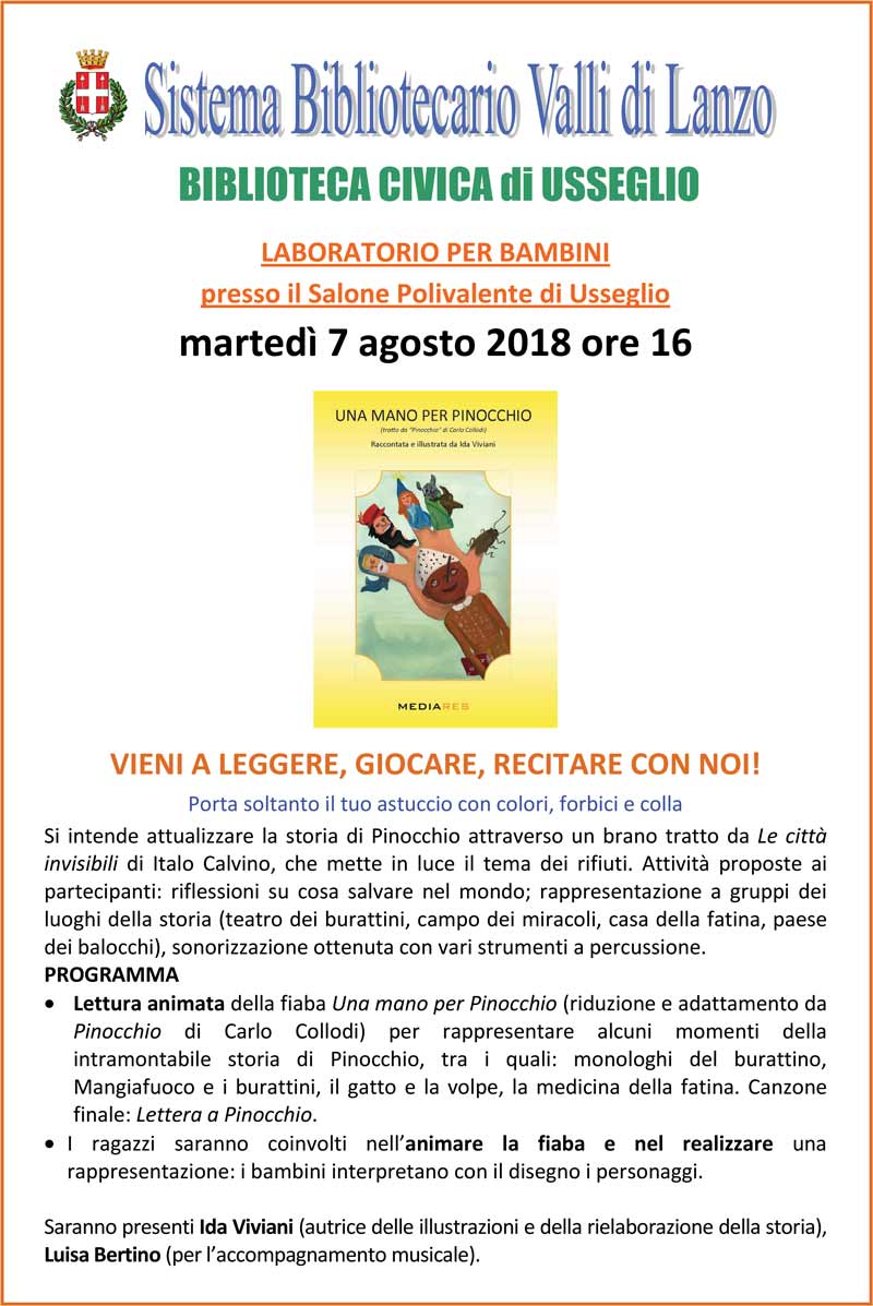 Si intende attualizzare la storia di Pinocchio attraverso un brano tratto da Le città invisibili di Italo Calvino, che mette in luce il tema dei rifiuti. Attività proposte ai partecipanti: riflessioni su cosa salvare nel mondo; rappresentazione a gruppi dei luoghi della storia (teatro dei burattini, campo dei miracoli, casa della fatina, paese dei balocchi), sonorizzazione ottenuta con vari strumenti a percussione.