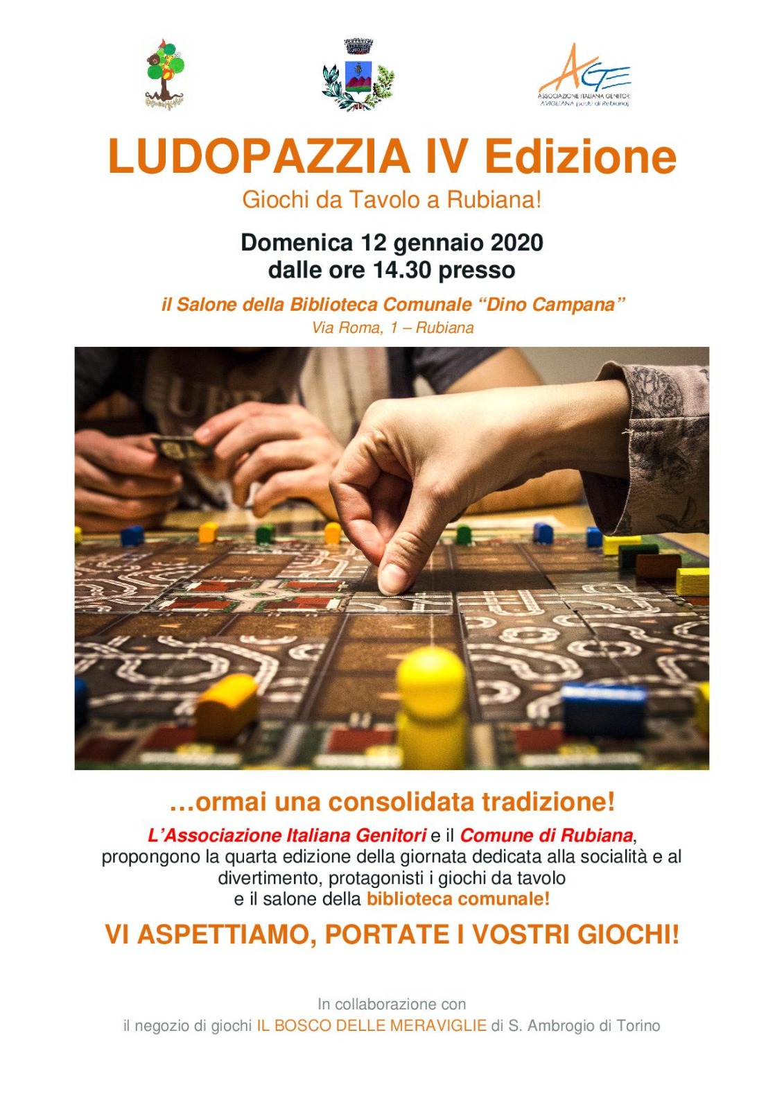 L'Associazione Italiana Genitori ed il Comune di Rubiana, in collaborazione con Il Bosco delle Meraviglie, propongono la quarta edizione della giornata dedicata alla socialità ed al divertimento.