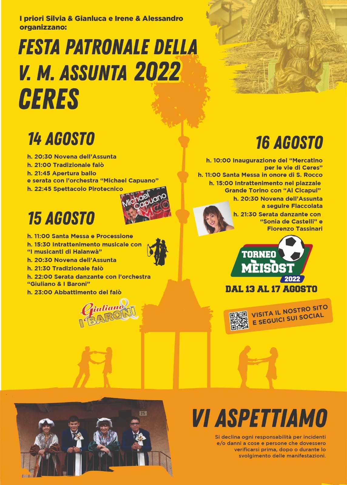 - 10.00 Inaugurazione del "Mercatino per le vie di Ceres" (NOVITA' 2022)