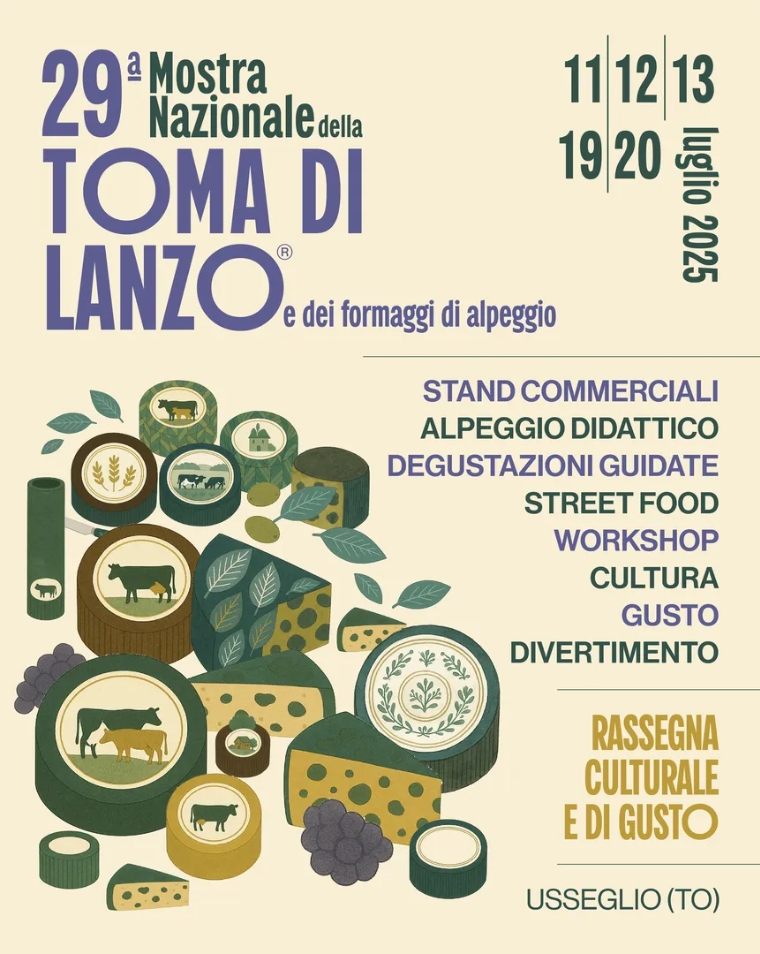 Torna anche nel 2025 uno degli appuntamenti più attesi dell’estate piemontese: la Mostra Nazionale della Toma di Lanzo® e dei formaggi d’alpeggio, giunta quest’anno alla 29ª edizione. Un evento nazionale volto a tutelare e omaggiare il lavoro dei pastori, promuovere il turismo sostenibile, le tradizioni locali e la biodiversità, oltre a rilanciare l’economia della Valle di Lanzo.