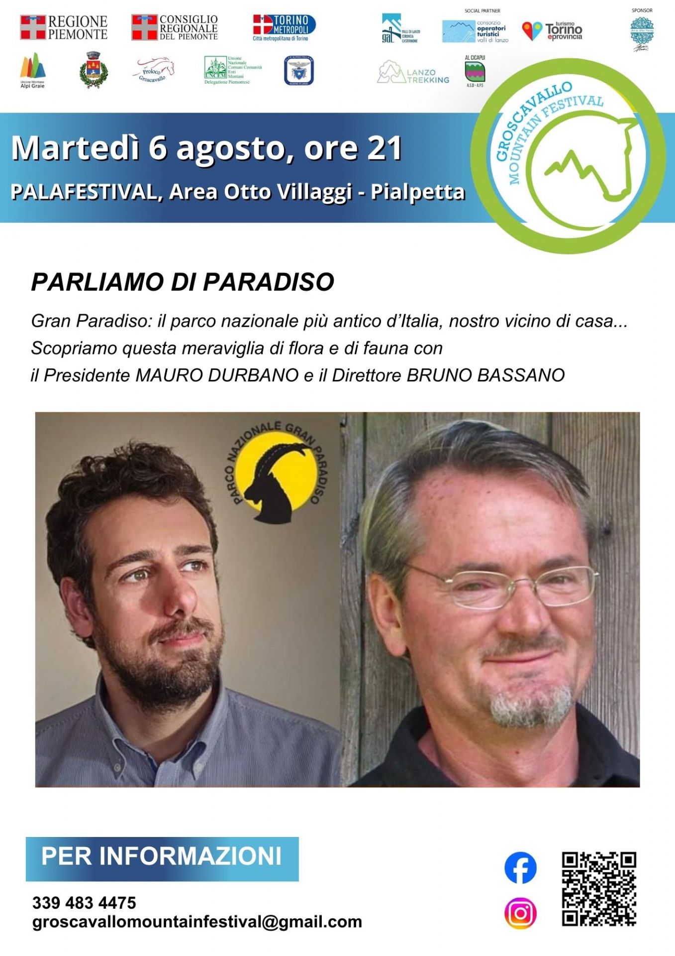 Martedì 6 agosto alle ore 21,00 presso l'Area Otto Villaggi il Presidente Mauro Durbano e il Direttore Bruno Bassano faranno scoprire le meraviglie del parco nazionale più antico d'Italia: il GRAN PARADISO.