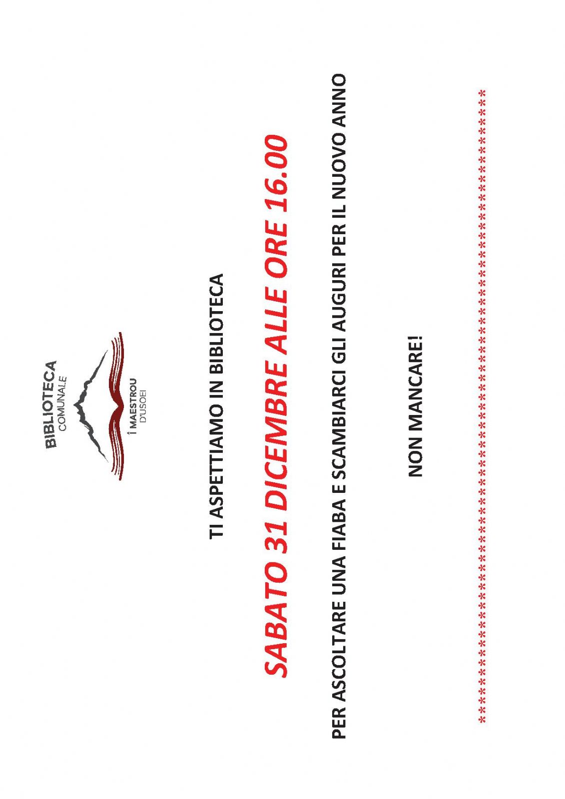 SABATO 31 DICEMBRE ALLE ORE 16.00