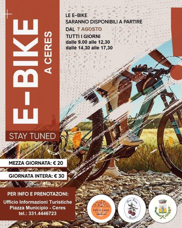 Le E-Bike saranno disponibili tutti i giorni dalle 9.00 alle 12.30, dalle 14,30 alle 17,30 oppure tutto il giorno dalle 9.00 alle 17.30.