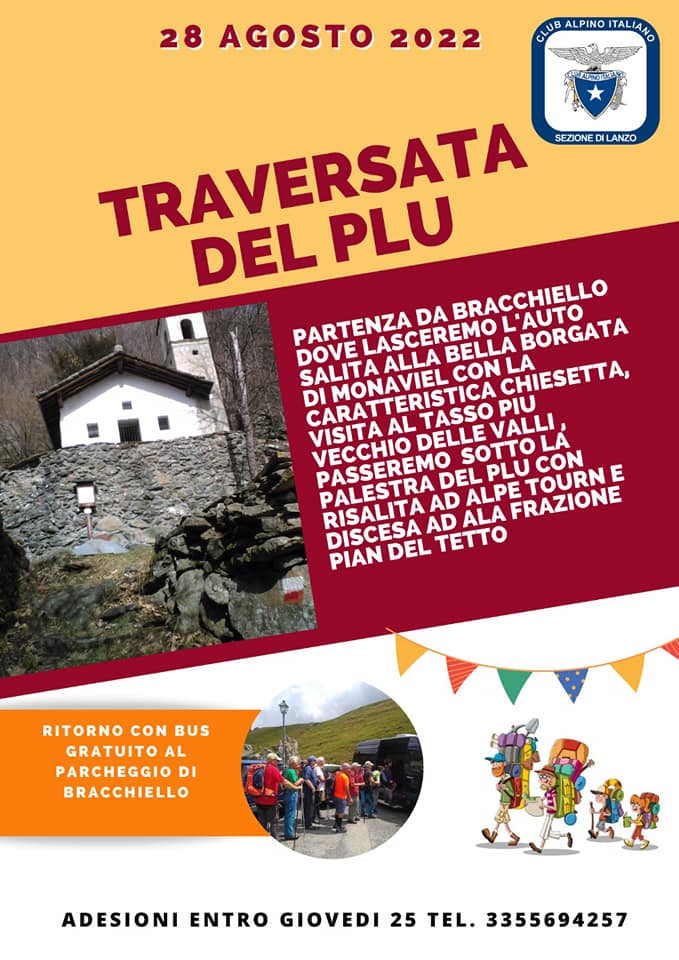 Salita da bracchiello, passaggio dalla borgata Monaviel e dalla palestra del Plu. Risalita all'alpe Tourn e discesa dalla borgata Pian del Tetto.