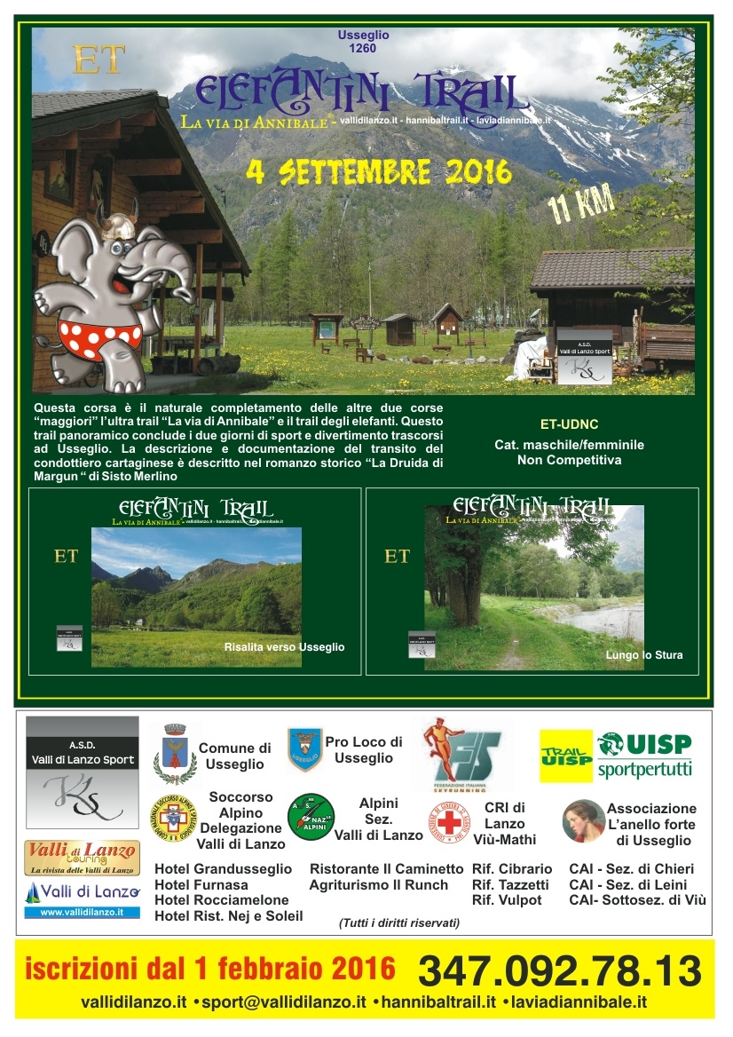 Questa corsa è il naturale completamento delle altre due corse “maggiori” l’ultra trail “La via di Annibale” e il Trail degli elefanti. Questo trail panoramico conclude i due giorni di sport e divertimento trascorsi ad Usseglio. E' possibile ripercorrere il pianoro in cui è sostato a riposare dopo la traversata delle Alpi nel 218 a.C. La descrizione e documentazione del transito del condottiero cartaginese è descritto nel romanzo storico “La Druida di Margun “ di Sisto Merlino www.druida.info