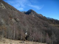 Il sentiero supera con molte svolte una forte pendenza passando in una zona disseminata da rocce di grosse dimensioni.