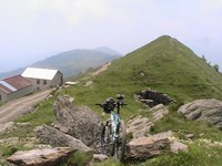 Lasciata l'auto nella piazza superiore di Cernesio,si scende sulla provinciale che porta a Cantoira,fino all'incrocio per Vrù,dove si svolta a dx.Non tirate troppo perchè la salita dopo 2km si accentua.Arrivati a Vrù,ci si rifornisce di acqua e si attraversa il paese fino a dopo un ponticello,dove si svolta a dx in vista di una sbarra.La si oltrepassa e da li comincia una salita veramente ostica soprattutto per il fondo che non è dei migliori.Arrivati a Blinant,ci si riposa(fontana)ammirando il panorama,e si riparte sempre in salita verso il Passo San Giacomo.A questo punto si scende fino ad un cancello,e ci si ritrova sull'asfalto proveniente da Chiaves.A questo punto comincia la salita che ,questa volta con un ottimo fondo,conduce al Passo Forchetta.Da questo punto le pendenze diventano più accentuate,fino a 150mt sotto il Lago,dove le ultime due rampe mettono a dura prova gambe e fiato.Arrivati al Lago(mt1986)si può salire con un ultimo sforzo all'Alpe Costapiana e tornare indietro.La discesa va affrontata tenendo conto che la stada è aperta al traffico.Appena dopo il Passo Forchetta sulla sx si segue un evidente tratturo con indicazione per il Rifugio Salvin.Ben presto ci si ritrova su un sentiero,e,con un po' di spinta e un po' di pedalate,si arriva al Rifugio Salvin,ottimo punto tappa.Da qui si affrontra una discesa piuttosto lunga su sterro,si passa davanti al Santuario di Marsaglia(posto incantevole),e si arriva sulla provinciale che proviene da Lanzo.Ora un ultimo sforzo vi condurrà a Chiaves,dove poco prima della piazza si gira a dx per Sistina,e subito dopo a sx sempre in salita verso il Colle della Croce.Da qui in discesa fino a Cernesio.