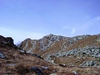 tra le due cime e lo si percorre fino ad arrivare al pianoro tra le cime. di li facilmente in vetta.