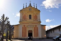 L'interno presenta decorazioni novecentesche e un magnifico pulpito ligneo settecentesco, eseguito dall'intagliatore Giuseppe Antonio Riva. Il campanile rappresenta tutta ciò che resta dell'antica Parrocchiale del paese. In stile gotico lombardo, con bifore e cuspide conica, risale al XII secolo.