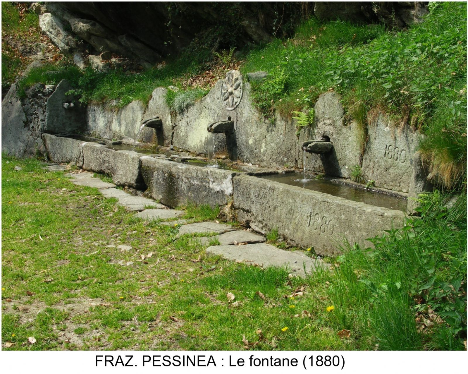 La borgata Pessinea è caratterizzata da vie pedonali che giungono alla originale fontana in pietra del 1880.