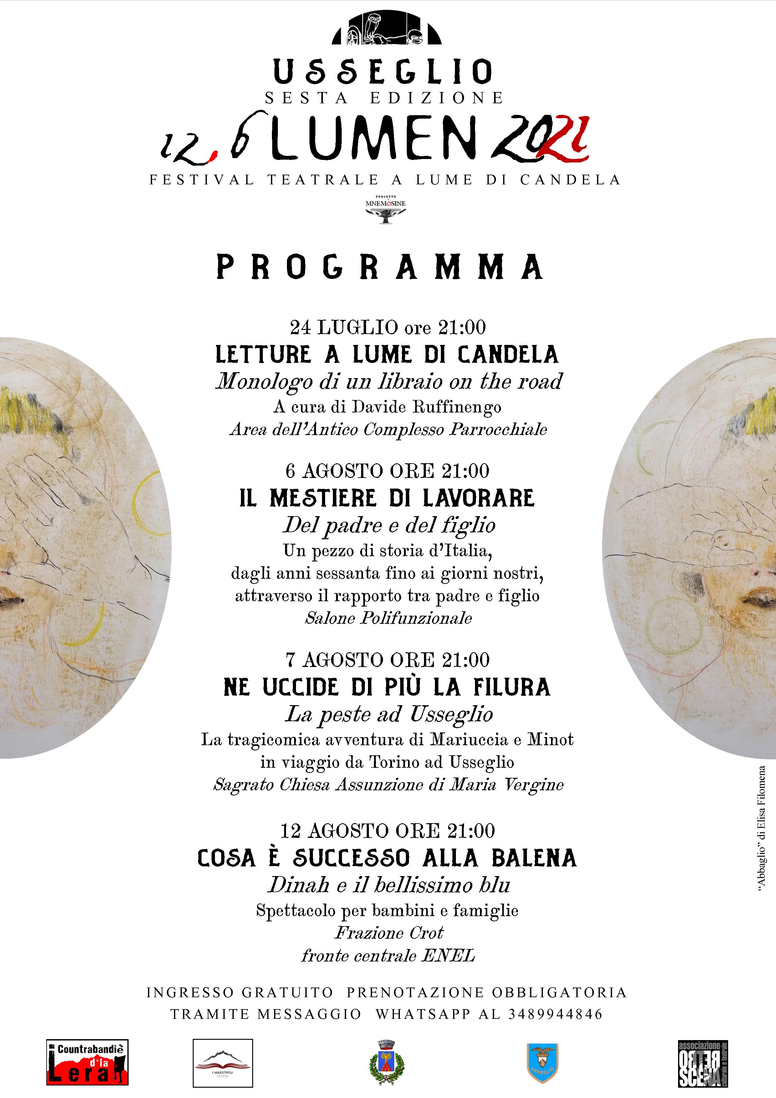 Ecco la prima serata della sesta edizione del 12,6 LUMEN FESTIVAL TEATRALE A LUME DI CANDELA ad USSEGLIO. Ingresso gratuito con prenotazione obbligatoria fino ad esaurimento posti, mandando un messaggio whatsapp al seguente numero