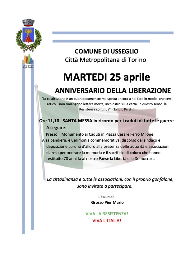MARTEDI' 25 aprile ANNIVERSARIO DELLA LIBERAZIONE