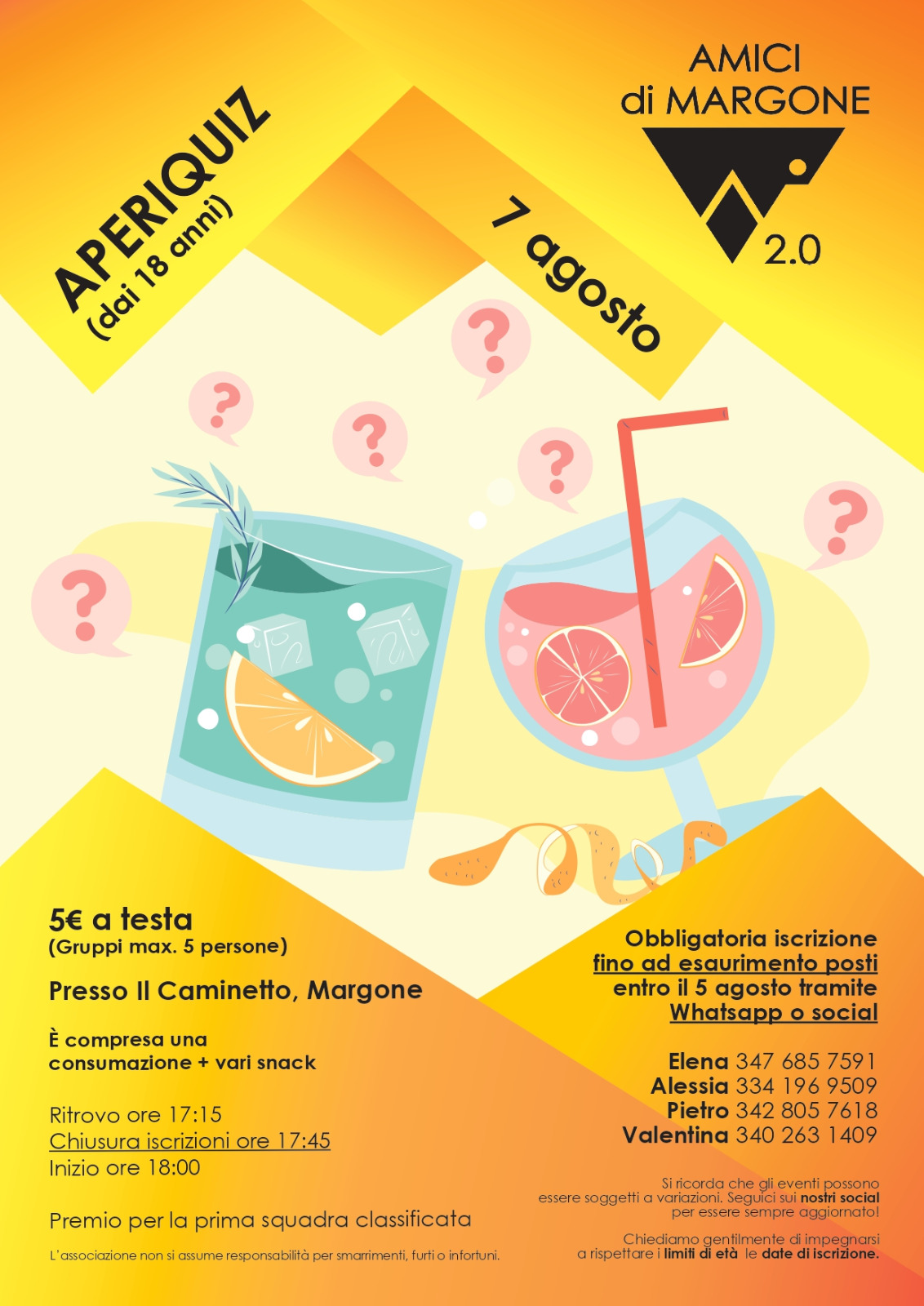 Obbligatoria iscrizione fino ad esaurimento posti entro il 5 agosto tramite WHATSAPP o SOCIAL