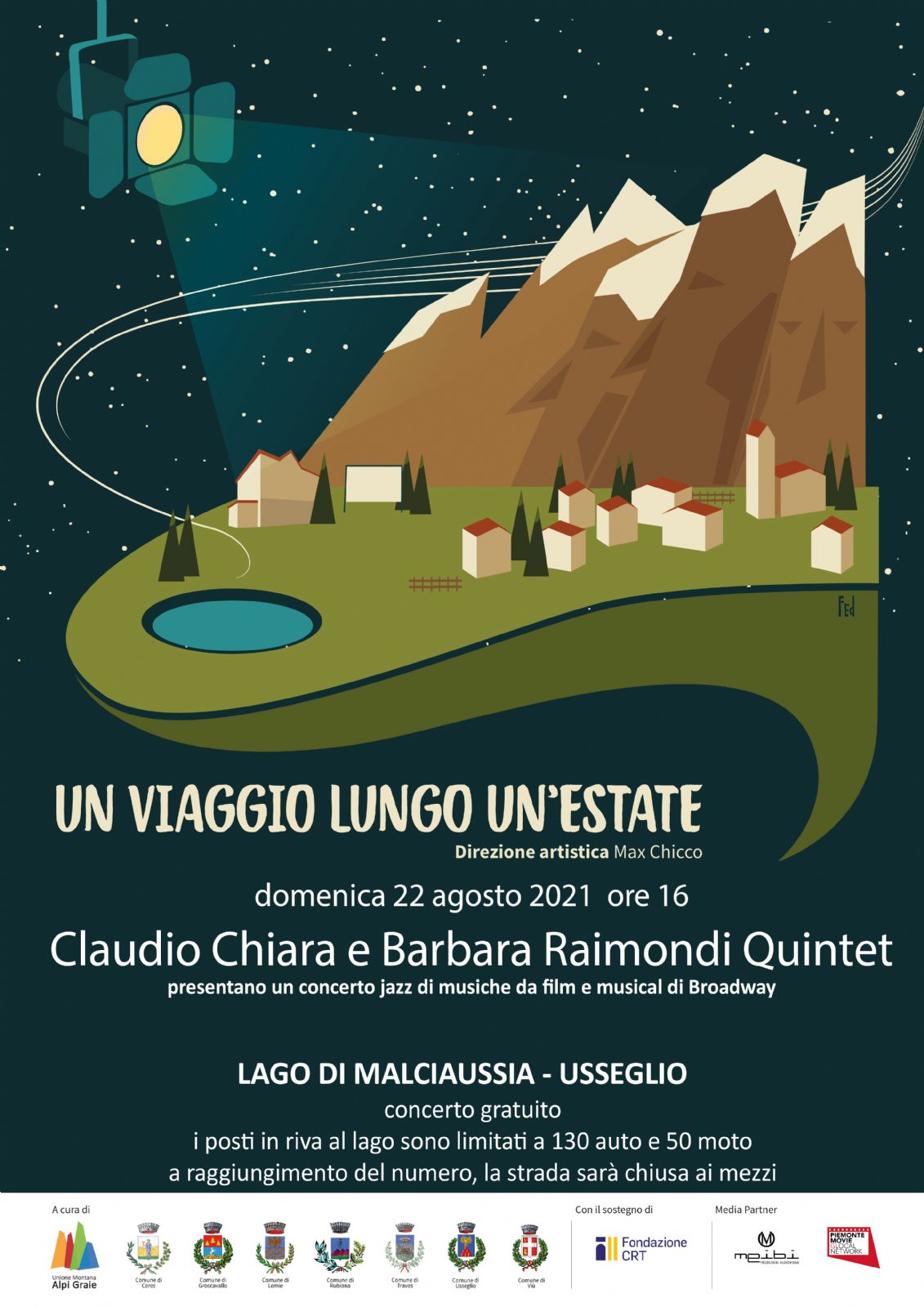 Vi aspettiamo nella splendida cornice del Lago di Malciaussia per ascoltare insieme a noi le musiche da film e i grandi successi Broadway magistralmente eseguiti dal Claudio Chiara & Barbara Raimondi Quintet.