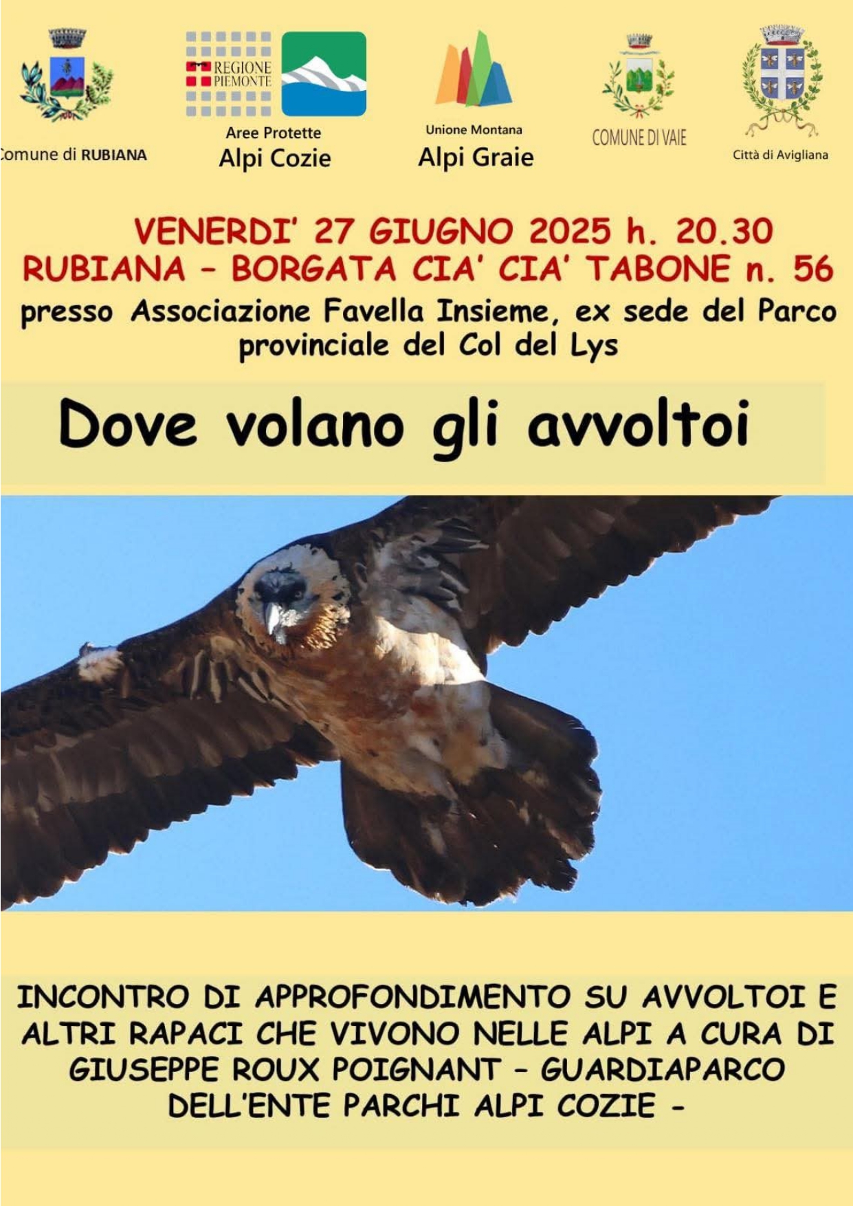 Incontro di approfondimento su avvoltoi e altri rapaci che vivono nelle Alpi a cura di Giuseppe Roux Poignant, Guardiaparco dell'Ente Parchi Alpi Cozie