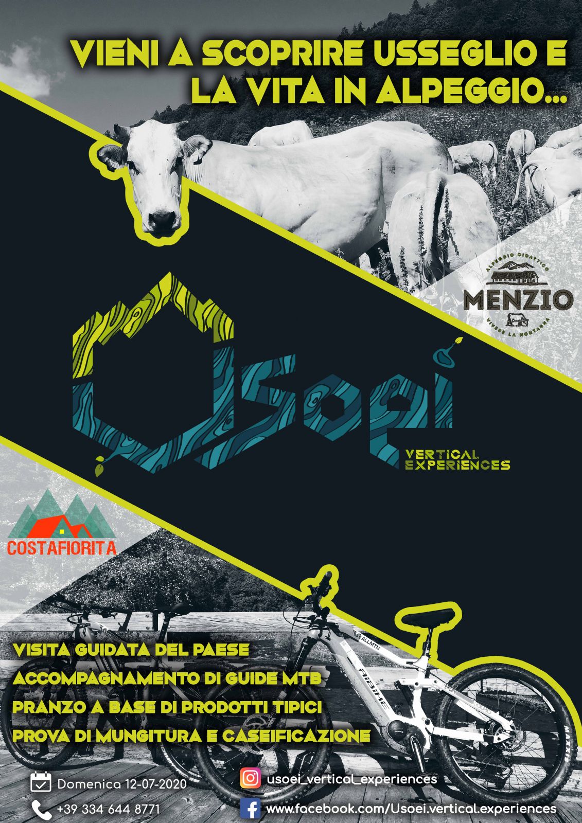 Percorso molto suggestivo che permette di visitare luoghi in parte dimenticati, ma con una storia secolare. Partenza dalla prima frazione di Usseglio; a bordo delle nostre biciclette si percorreranno i sentieri di collegamento tra le borgate e ci si fermerà a vedere i principali monumenti di interesse storico-culturale e naturalistico. La nostra attenzione verrà, però, focalizzata sugli alpeggi: avremo modo, infatti, di conoscere e di riflettere sulla vita del margaro di ieri e di oggi, sulla produzione dei formaggi locali, le tome, e sull’allevamento in montagna in generale. Ci si fermerà presso l’alpeggio Menzio, dove verrà fatta una prova pratica di caseificazione e di mungitura e si degusteranno i prodotti tipici locali.