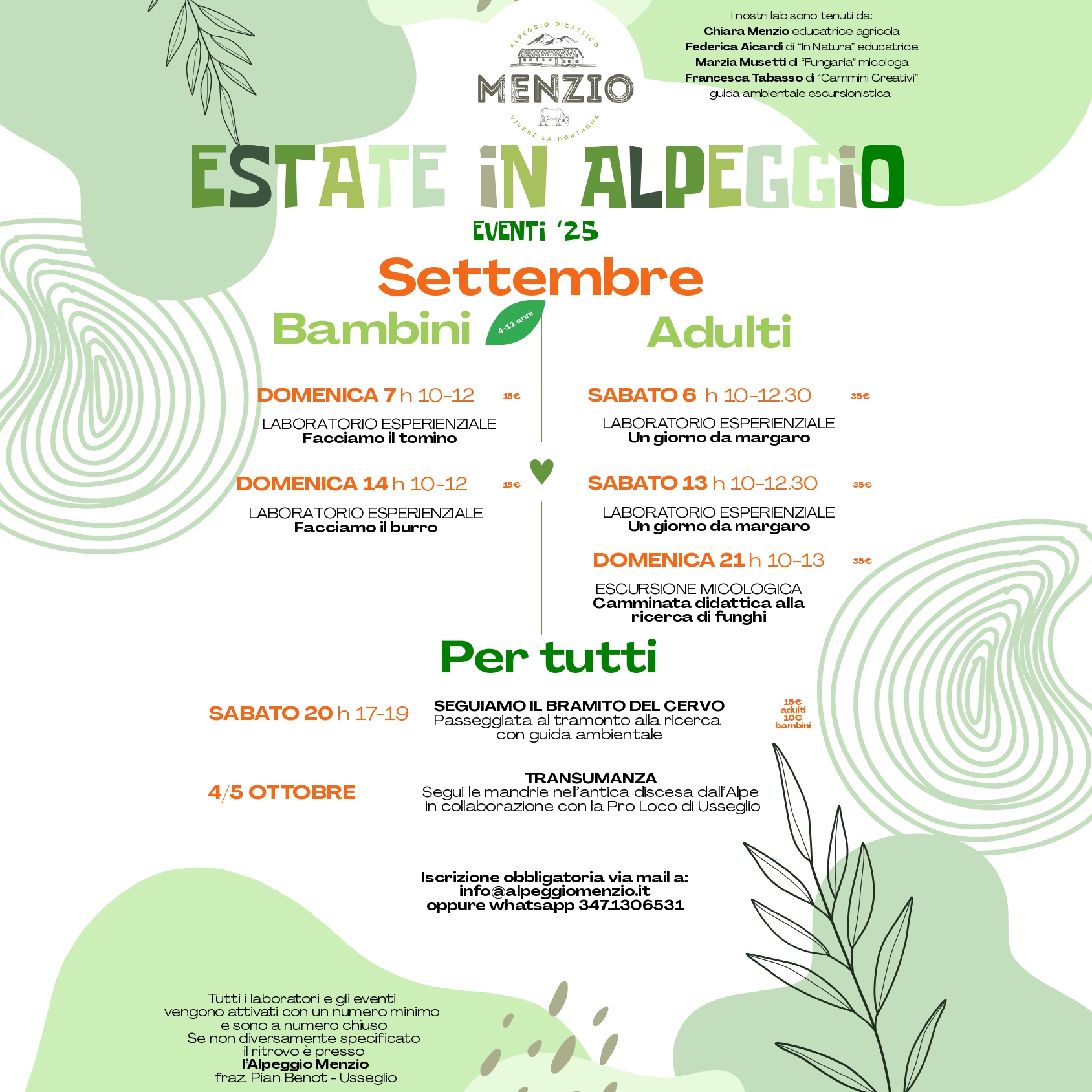 Info e prenotazioni: info@alpeggiomenzio.it | WhatsApp 347 1306531