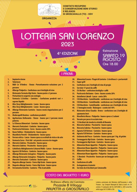 ESTRAZIONE PREMI LOTTERIA 2023 - GROSCAVALLO MOUNTAIN FESTIVAL