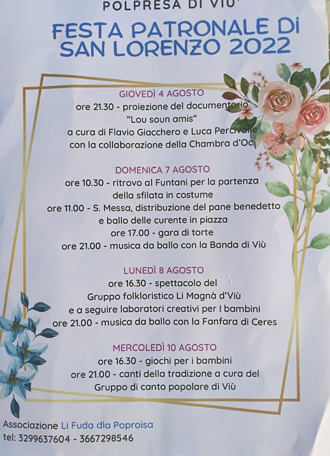 7, 8 e 9 e 10 agosto in fraz. Polpresa
