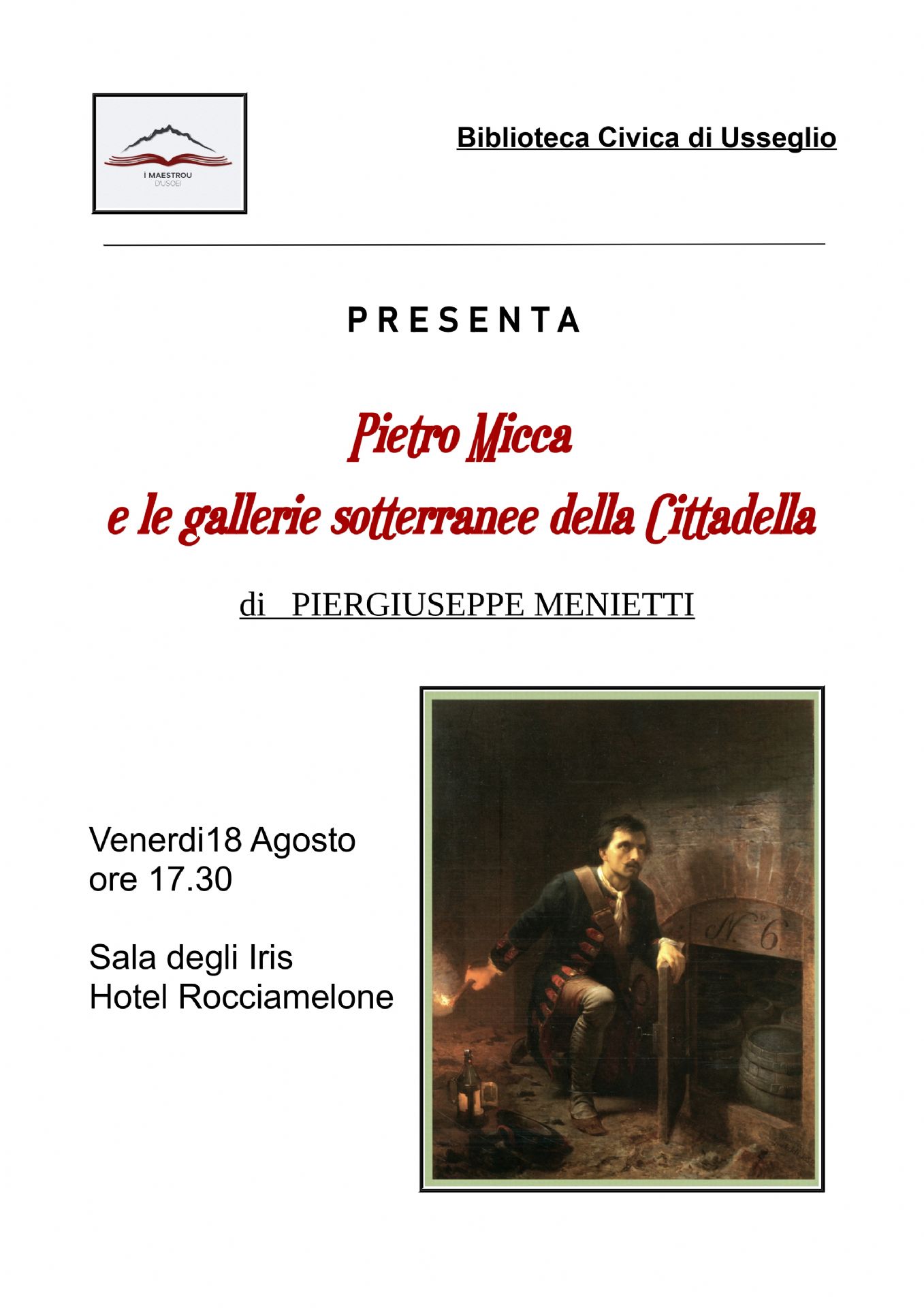 La Biblioteca Civica di Usseglio presenta "Pietro Micca e le gallerie sotterranee della Cittadella" di Piergiuseppe Menietti in Sala degli Iris all'Hotel Rocciamelone.