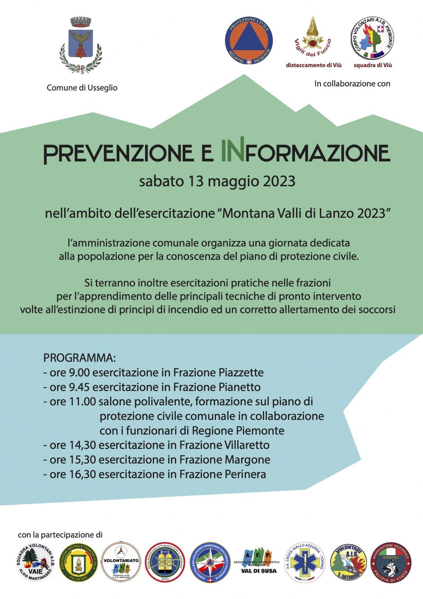 - ore 9.00 esercitazione in Frazione Piazzette