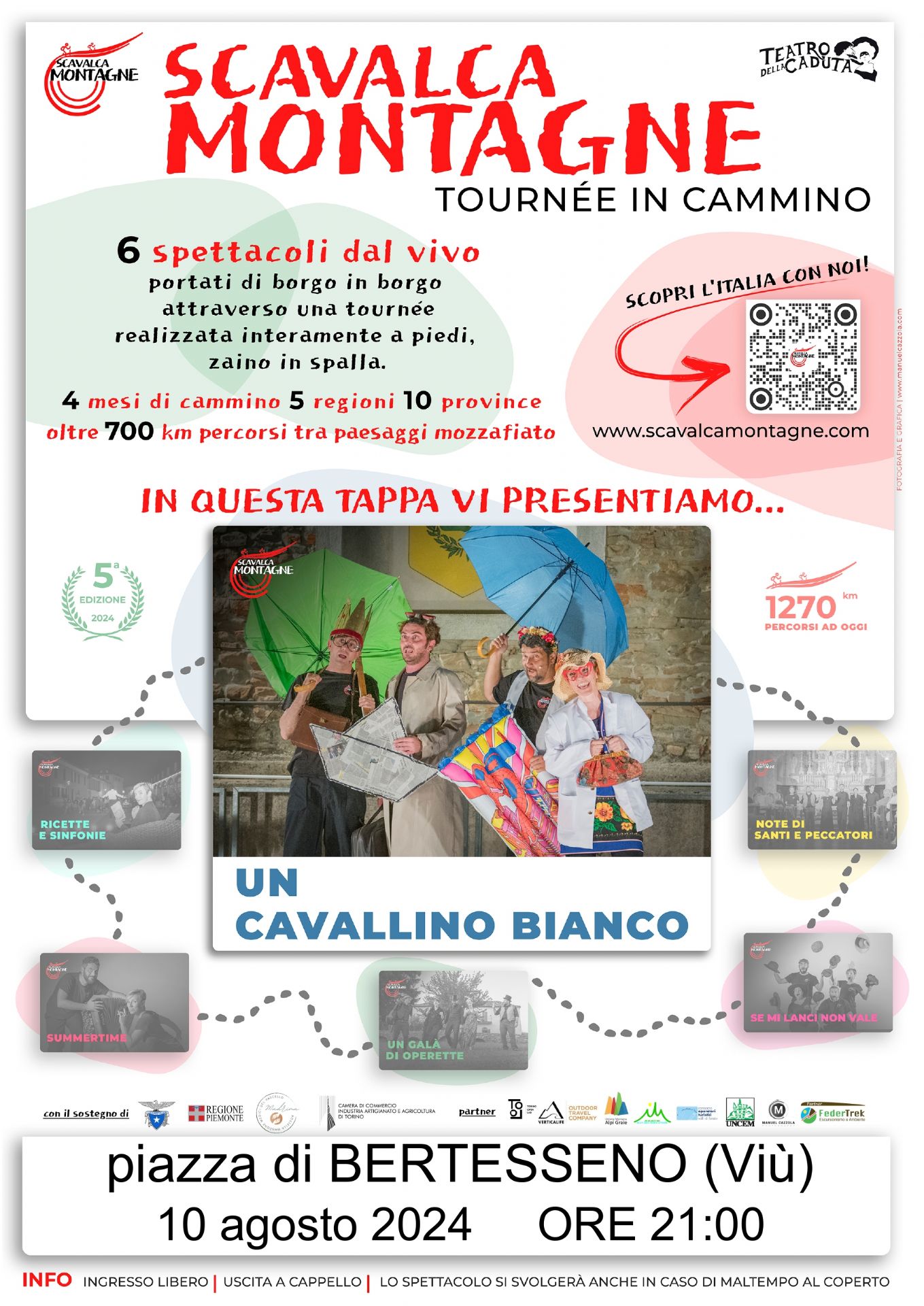 Sabato 10 agosto la compagnia di artisti 'SCAVALCA MONTAGNE' presenta alle ore 21,00 il suo spettacolo "UN CAVALLINO BIANCO".