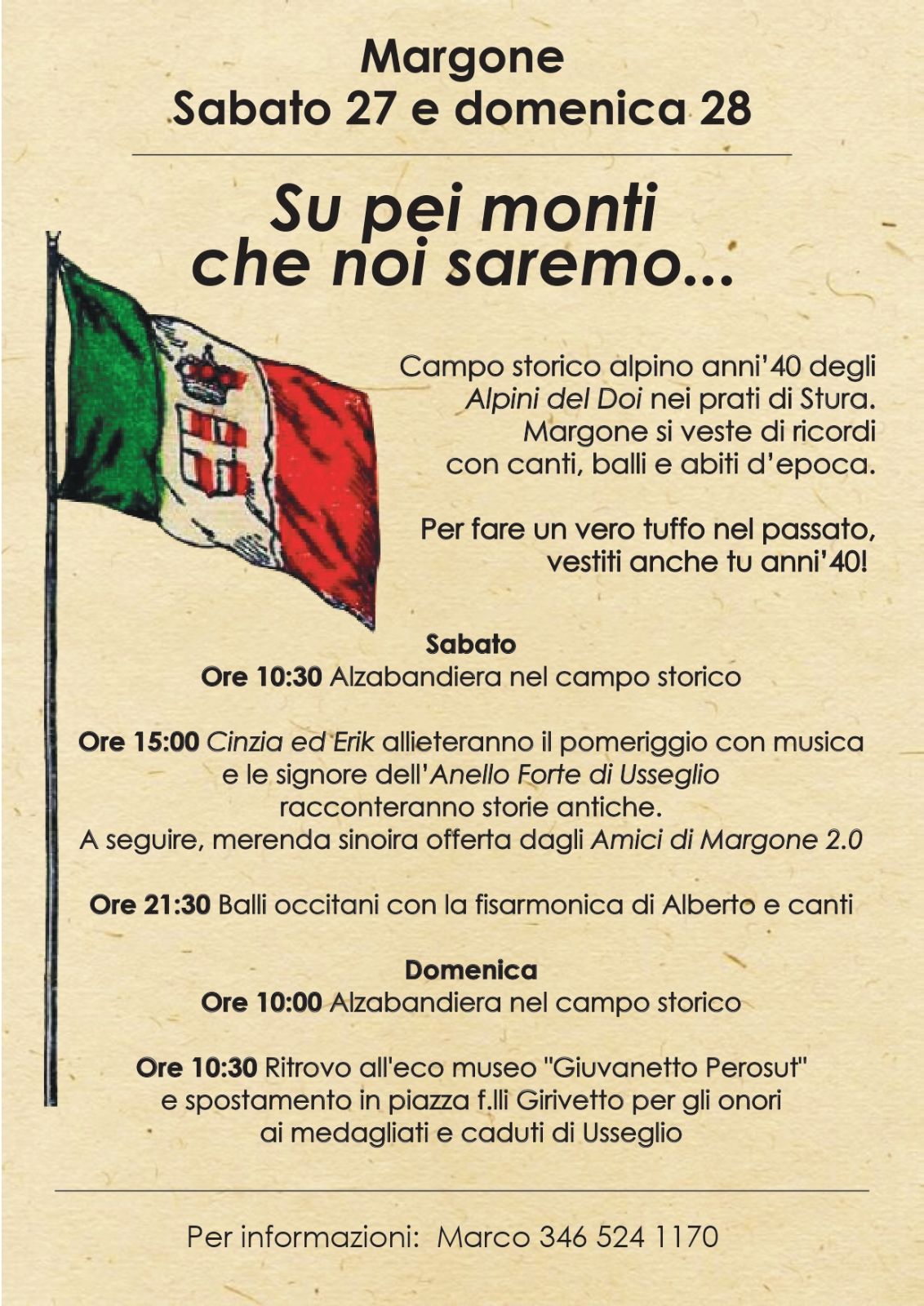 Per informazioni: Marco 346 524 1170
