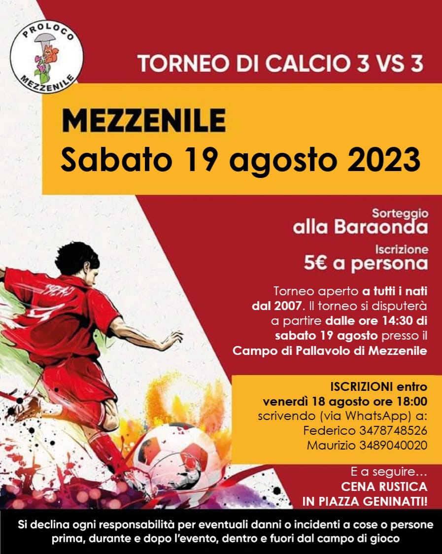 - Iscrizioni entro venerdi 18/8/2023 ore 18.00 scrivendo via whatsapp ai numeri in allegato