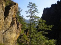 Il sentiero si stringe salendo per il bosco fino ad arrivare ad un punto panoramico subito dopo una una strettoia tra due rocce, dopo il quale il sentiero svolta decisamente a destra ed entra nel vallone. Nel tratto successivo bel sentiero con muretti di pietra per supporto, alto sul torrente che forma una bella cascata. A un bivio, tenere il sentiero alto, trascurando il ramo che scende verso il fiume per poi dirigersi alla "cresta della scuola" del Monte Plu. La vegetazione si fa abbondante. Seguire i rari ometti di pietra che portano ad attraversare 2 volte il torrente,(1210 m e 1310 m i due guadi) piuttosto impetuoso (il primo guado puo' essere delicato in caso di portata elevata del torrente).
