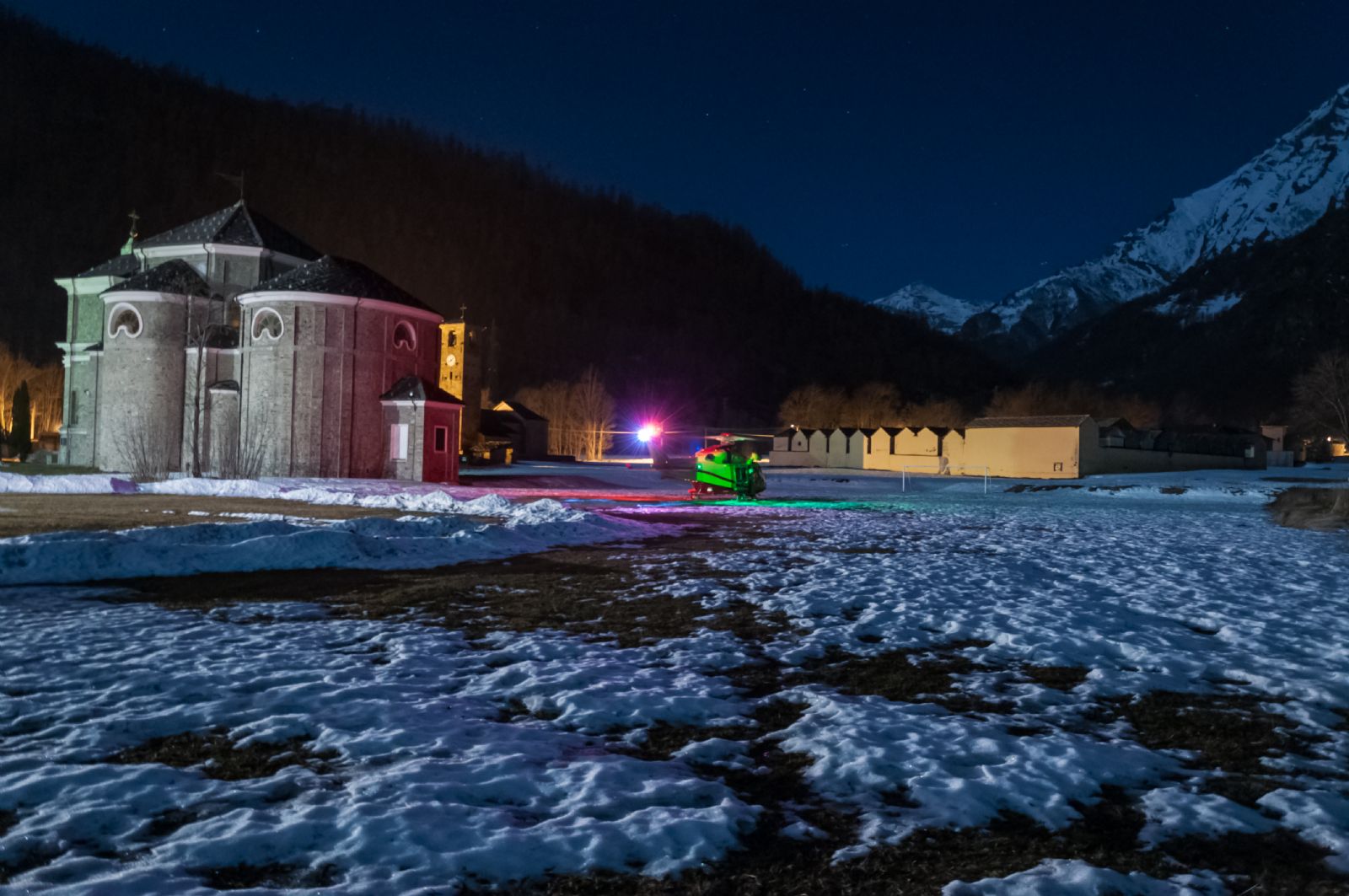 Usseglio - Test di volo notturno eliambulanza