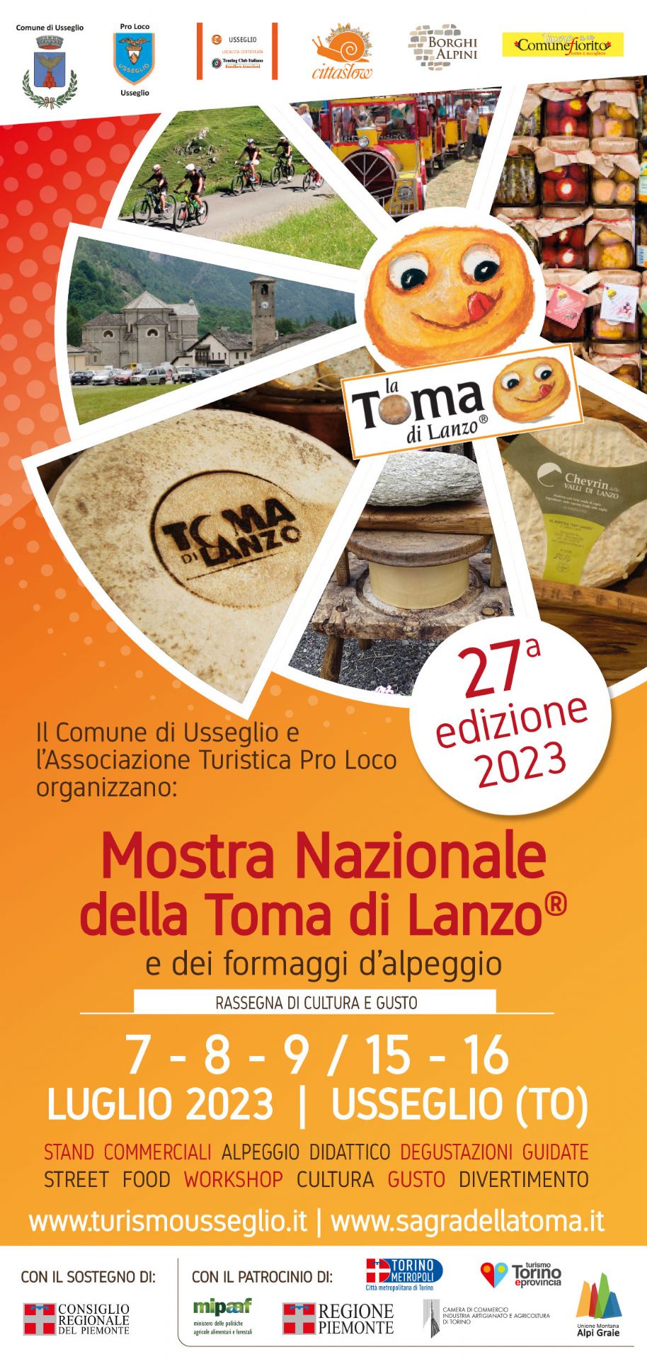 Grande fermento a Usseglio (TO), borgo simbolo delle Valli di Lanzo. Sono in corso gli ultimi preparativi per la 27A “Mostra Nazionale della Toma di Lanzo e dei formaggi d’alpeggio”, uno dei più importanti eventi gastronomici e culturali del territorio piemontese. La manifestazione, organizzata dal Comune e dalla Pro Loco, si svolgerà come da tradizione nel mese di Luglio, da venerdì 7 a domenica 9 e nei giorni di sabato 15 e domenica 16. Nata per promuovere i formaggi tipici e il meglio della gastronomia e dell’artigianato locale, la Mostra ha consolidato negli anni un grande successo, registrando nell'edizione del 2022 la presenza di oltre 20.000 visitatori. Un omaggio alla Toma di Lanzo, regina di queste terre, alle specialità valligiane e piemontesi, ma non solo; l’evento si propone anche come vetrina del made in Italy, ospitando espositori selezionati provenienti da diverse regioni italiane.