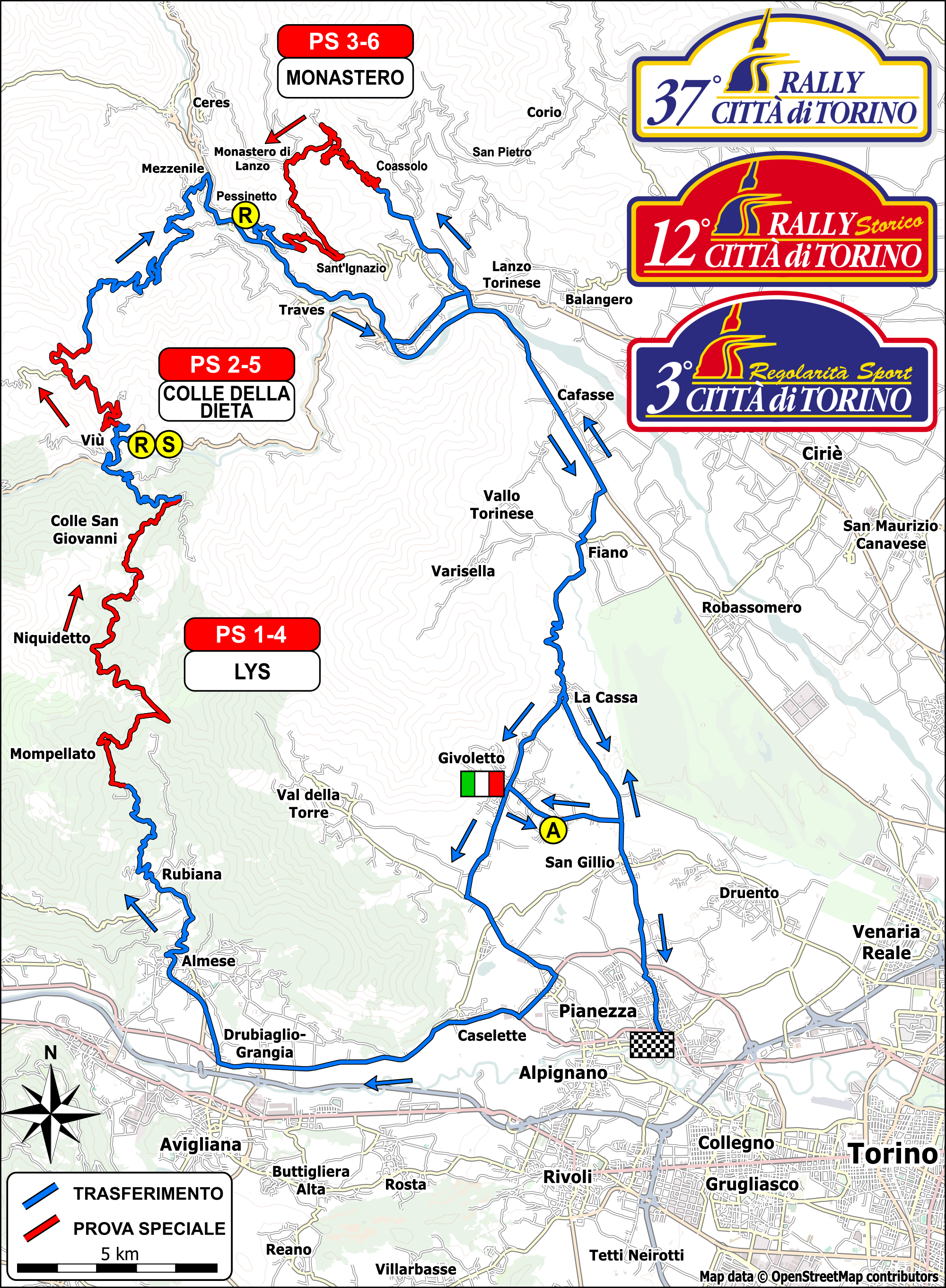 Il parco assistenza sarà allestito a Givoletto, mentre Pianezza ospiterà l'arrivo e le premiazioni.