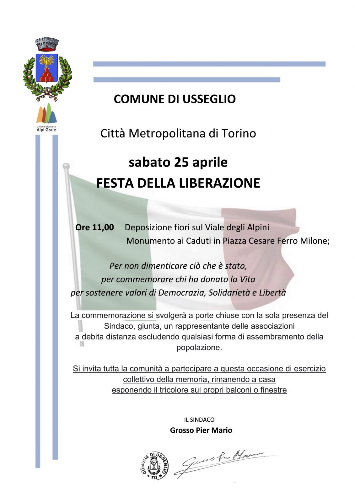 Sindaco, giunta, un rappresentante delle associazioni a debita distanza escludendo qualsiasi forma di assembramento della popolazione.