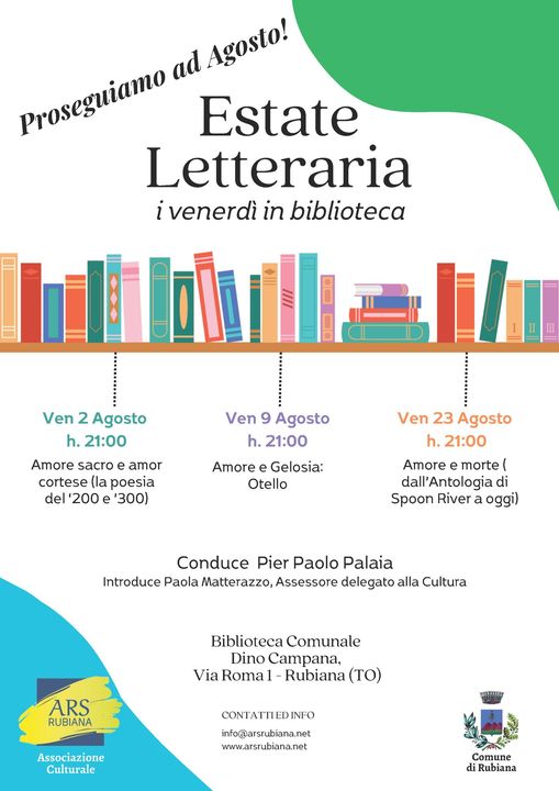 Ars Rubiana organizza "𝗘𝗦𝗧𝗔𝗧𝗘 𝗟𝗘𝗧𝗧𝗘𝗥𝗔𝗥𝗜𝗔 - I VENERDI' IN BIBLIOTECA".