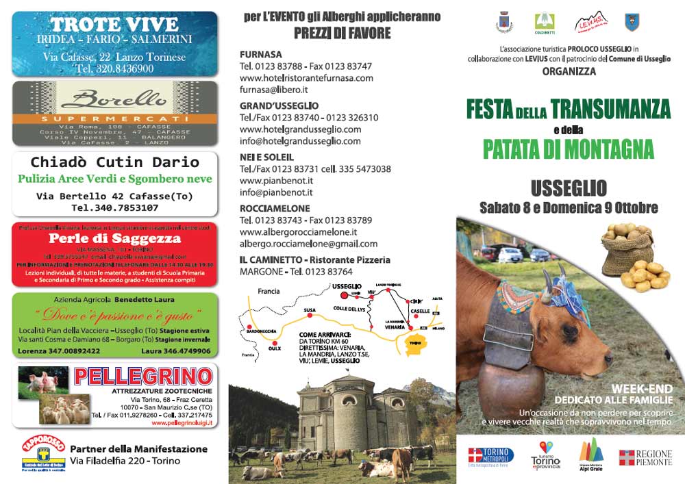 - Ore 16.00 PARTENZA - La discesa del corteo dall’alpeggio, sarà accompagnata dal caratteristico suono dei campanacci fino ad Usseglio,dove le mandrie saranno accolte con allegria, musica e calore.