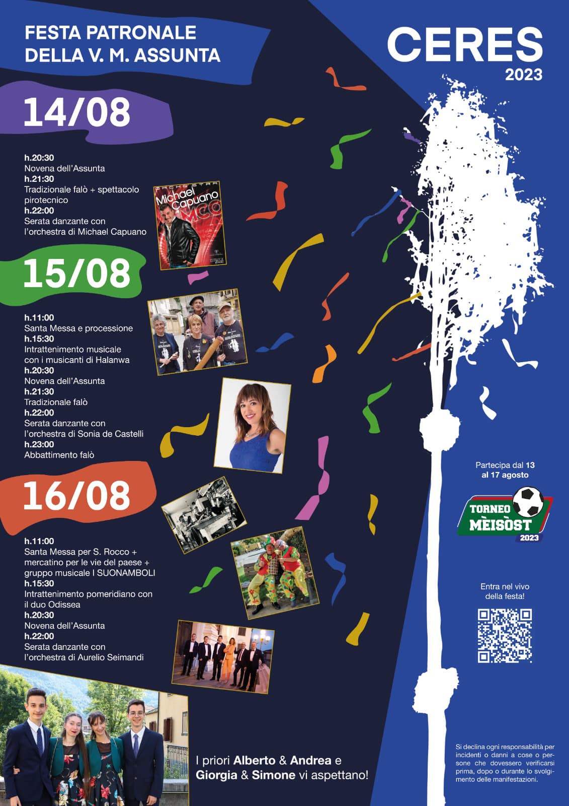 La festa patronale dell'Assunta è una delle più sentite nelle valli di Lanzo. Prevede celebrazioni religiose quali S. Messe e processioni seguite da festeggiamenti e serate danzanti, si svolgeranno i tradizionali falò il 14 sera e il 15 sera. Il 14 sera al falò seguirà lo spettacolo pirotecnico.