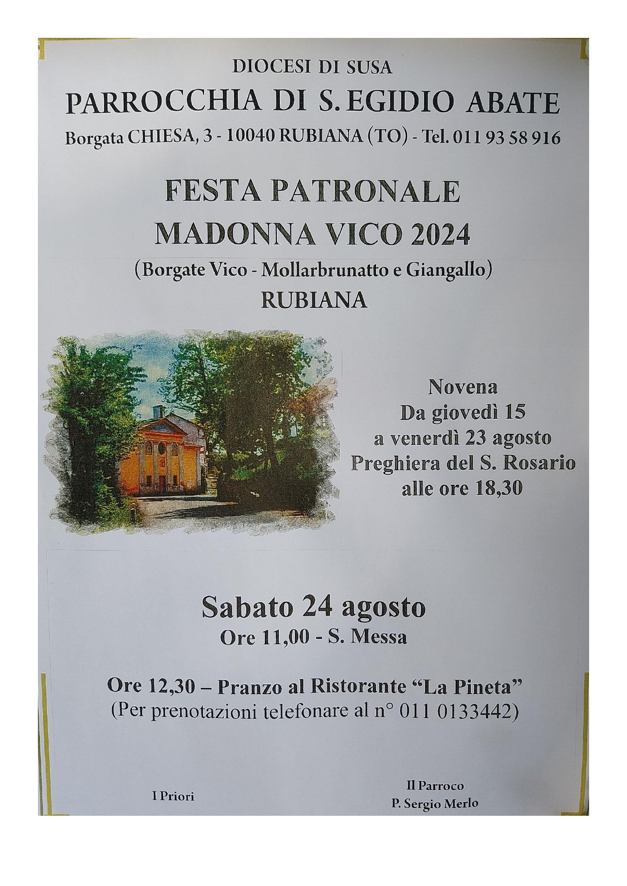 Sabato 24 agosto in occasione della 'FESTA PATRONALE DELLA MADONNA DI VICO':