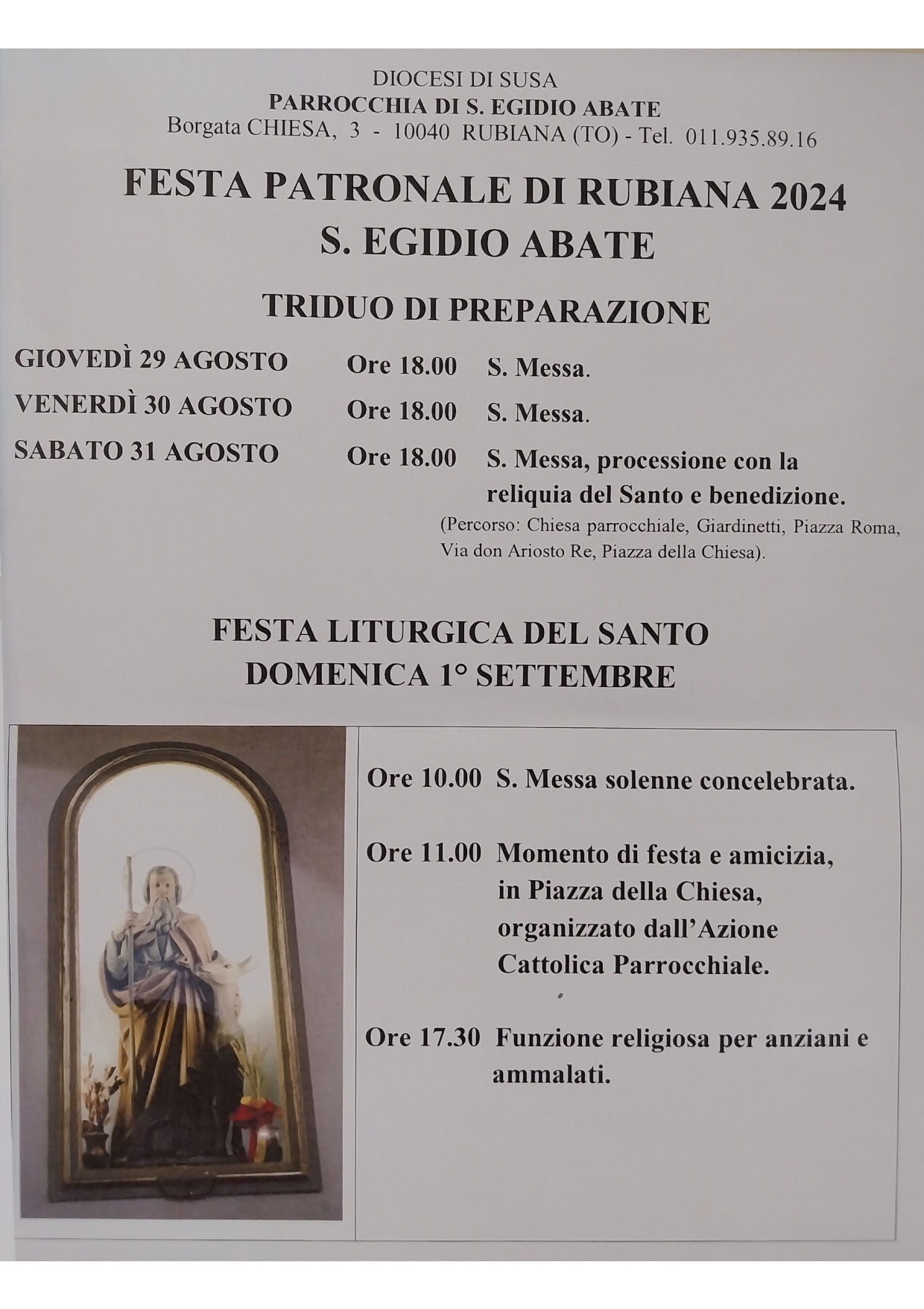 - ore 18,00: Santa Messa, processione per la reliquia del Santo e benedizione