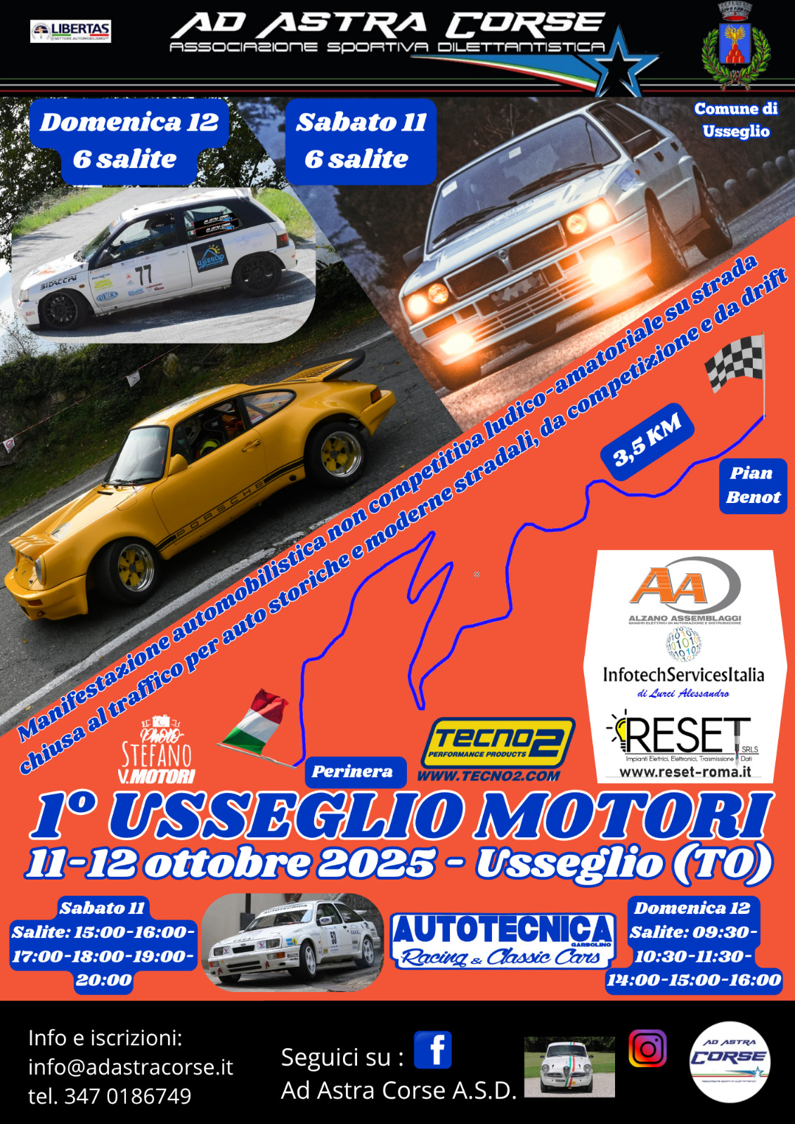 L’evento si svolgerà su un percorso di 3,5 km a Pian Benot, completamente chiuso al traffico, dove si alterneranno spettacolari salite dedicate a:
