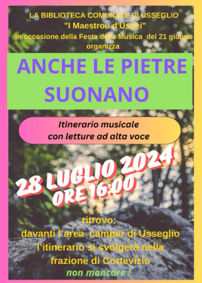 La Biblioteca Comunale di Usseglio "I Maetrou d'Usoei" organizza in occasione della Festa della Musica del 21 giugno organizza "Anche le pietre suonano".