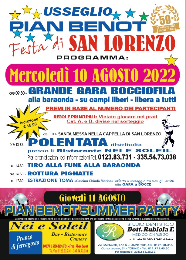 - Ore 9,30: Grande Gara Bocciofila, libera a tutti e con premi