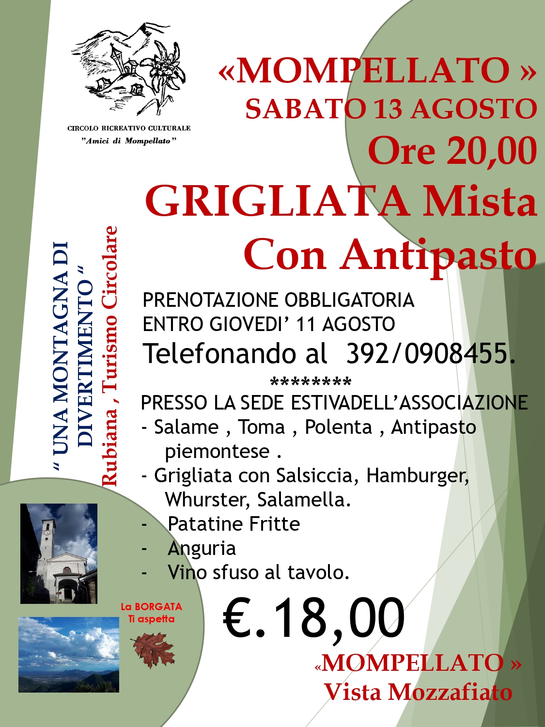 Ore 20 a Mompellato, presso la sede estiva dell'associazione
