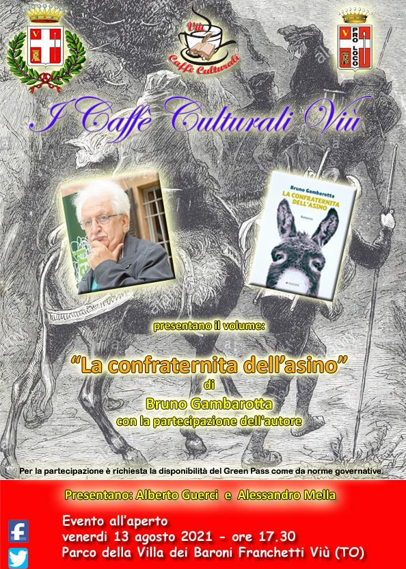 L’evento avrebbe dovuto svolgersi già la scorso anno ma l’emergenza covid lo ha reso impossibile ed ora si tenta progressivamente di riprendere le attività e recuperare i felici momenti perduti in questi mesi. Gambarotta parlerà del suo romanzo “La Confraternita dell’Asino”. Un brillante libro: «Delfino Malvasia è un giovane giornalista precario con il mito di Indro Montanelli, ma il suo lavoro consiste nello scovare scoop di provincia, come quello del professore di filosofia che nel pomeriggio fa il ciabattino, o del novantenne che pratica parapendio. Poi sembra arrivare l'occasione d'oro della carriera: in un paesino del Piemonte si svolge "il pellegrinaggio con l'asino di Gesù", un percorso a cavalcioni di un somaro che replica quello compiuto da Gesù nella Domenica delle Palme. I fedeli pagano 120 euro, indossano una tunica, salgono sull'asino e durante la passeggiata chiedono la grazia. La faccenda si sta trasformando in un giro d'affari non da poco, così Delfino decide di fingersi un pellegrino per indagare. Ma mentre è a bordo dell'asino a fare il giro devozionale... Una serie di equivoci e situazioni stravaganti lo porteranno a diventare il leader di un movimento popolare, a vedersi offerta la direzione del maggiore quotidiano d'Italia e a conquistare Adelaide, che gli fa finalmente sognare di andare via da casa di mamma e papà».