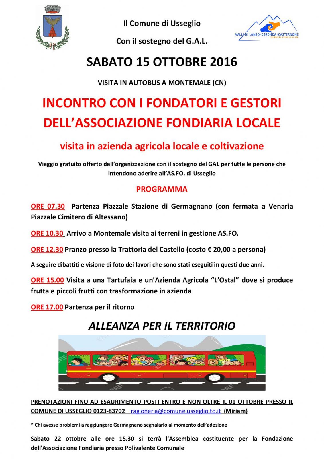 Viaggio gratuito offerto dall’organizzazione con il sostegno del GAL per tutte le persone che intendono aderire all’AS.FO. di Usseglio